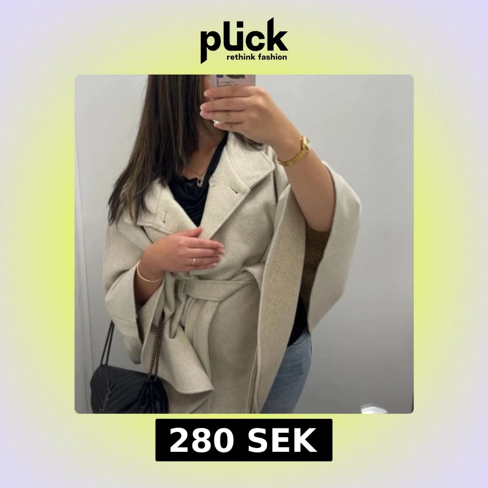 Säljer en beige kappa med bred krage och omlott-design. Jackan har ett matchande bälte i midjan och vida ärmar som ger en chill och trendig look. Perfekt för dig som gillar stilrena och enkla plagg med lite extra edge. Materialet känns mjukt och har en ull-liknande finish.
