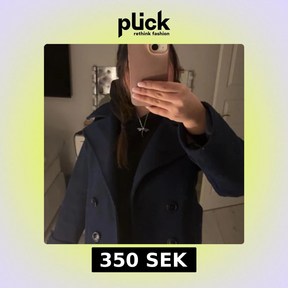 Säljer en stilren mörkblå kappa från Design by Ri. Den har en klassisk dubbelknäppt design med stora knappar och två framfickor. Perfekt för kyligare dagar med sin eleganta look. Den är som sagt väl använd och lite nopprig🩷men väldigt fin💙