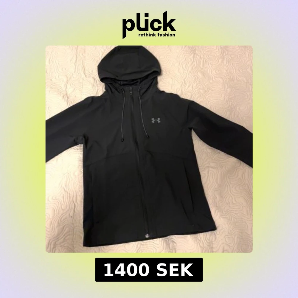 Säljer en stilren svart vindjacka från Under Armour. Jackan har en dragkedja framtill och en justerbar huva. Perfekt för blåsiga dagar och sportiga aktiviteter. Den är helt oanvänd🖤