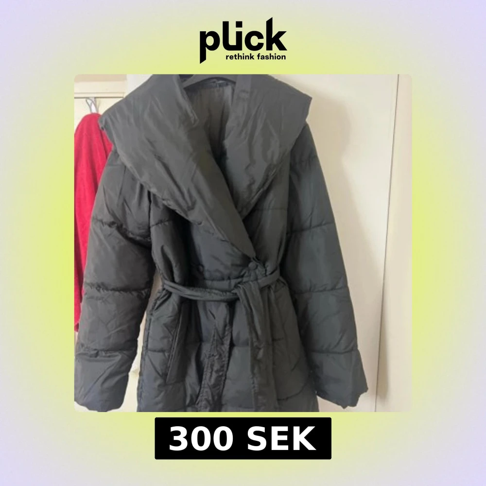 Säljer en svart pufferjacka med bred krage och bälte i midjan. Jackan är quiltad och har en oversized känsla, perfekt för kalla dagar. Långärmad och tillverkad i syntetmaterial. Enkel och stilren design som håller dig varm hela vintern. Inte använd en ända gång men den har inte prislapp.