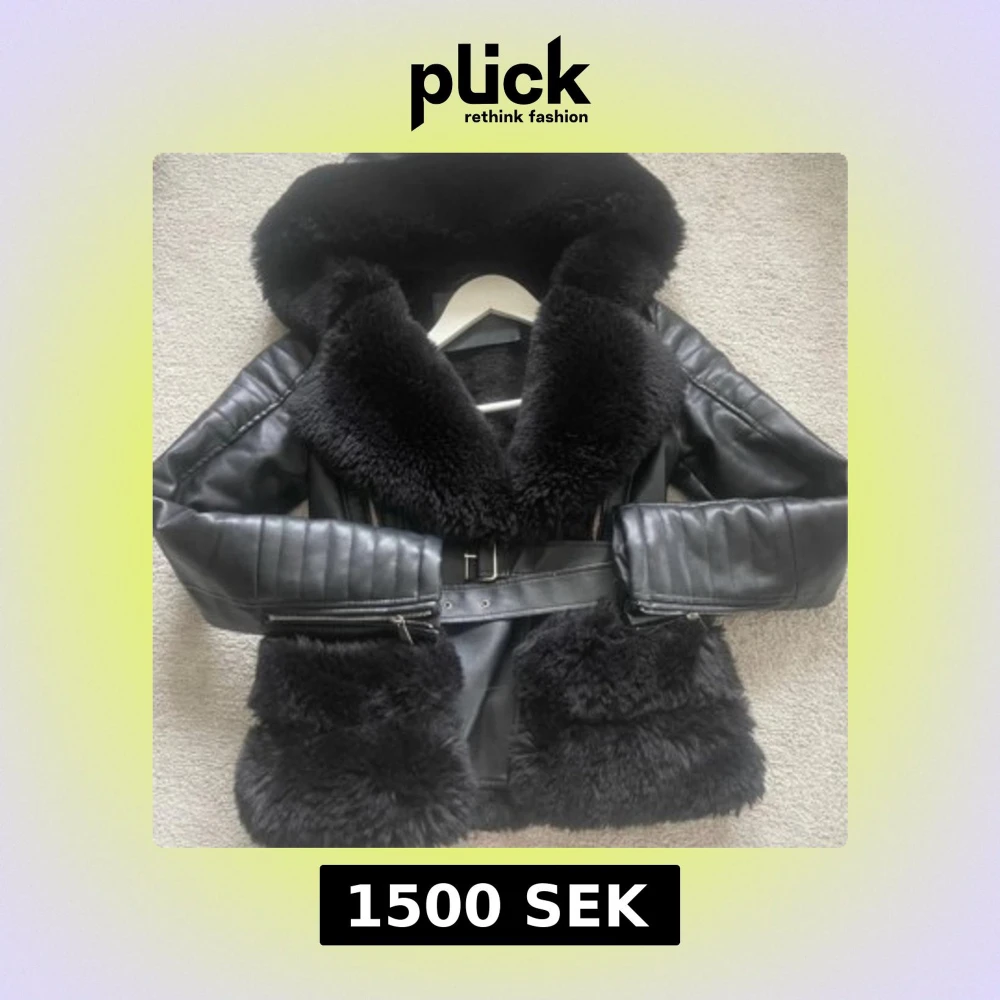 Snygg svart pälsjacka med bred krage och fluffiga detaljer på krage och nederkant. Jackan har quiltade skinnärmar, bälte i midjan och dragkedjor vid fickorna. Perfekt för dig som vill ha en statementjacka med lyxig vibe och cool siluett. Storlek S. Men den är ganska tight. Jag brukar ha storlek Xs-s Nypris: 2400kr