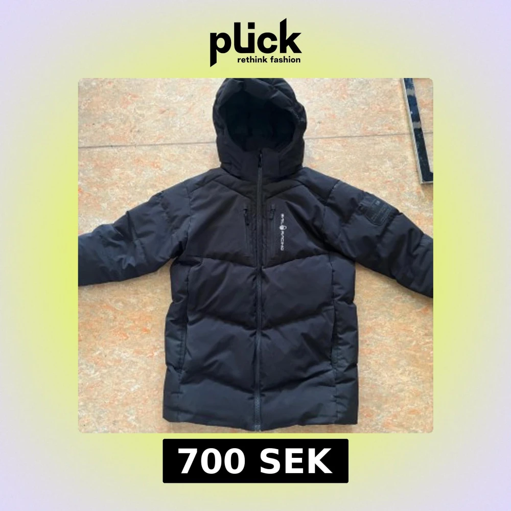 Säljer en svart pufferjacka från sail racing. Jackan har en dragkedja framtill och en praktisk huva. Perfekt för kyliga dagar. Den har en stilren design med en bröstficka och märkets logga på ärmen.