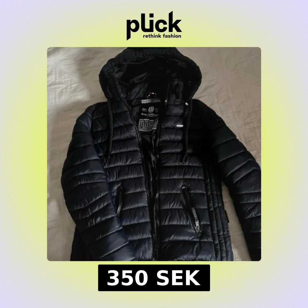 Säljer en svart pufferjacka från Navahoo med huva och dragkedja. Jackan har en quiltad design och praktiska fickor med dragkedjor. Perfekt för kyliga dagar.