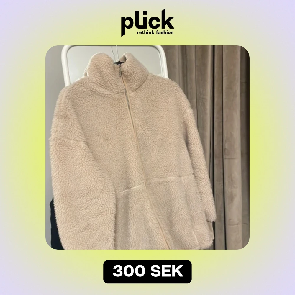 Mysig beige teddyjacka perfekt för kyliga dagar. Jackan har en dragkedja framtill och är långärmad.