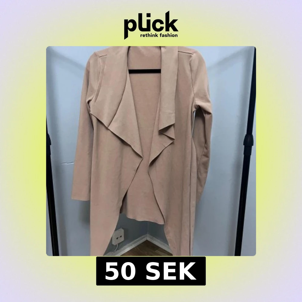 Säljer en beige kappa med snygg vattenfalls-krage och omlott-design. Jackan är långärmad och har en mjuk, följsam känsla. Perfekt för lager-på-lager och passar till många olika outfits. Är tunn och fungerar även under väst/skinnjacka. Använd vid ett tillfälle. Personen på bild är 160 cm lång. Paket skickas dagligen med korrekt emballage. Kommer från ett djurfritt hem.