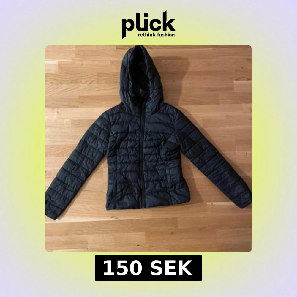 Snygg svart quiltad jacka med dragkedja och huva. Perfekt för kyligare dagar. Jackan har långa ärmar och en stilren design.