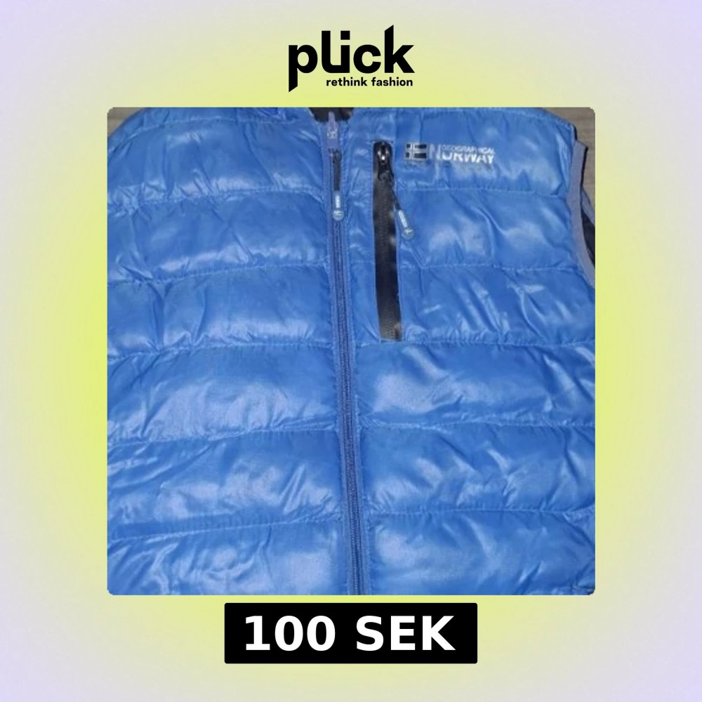 Snygg blå dunväst från Geographical Norway med quiltad design och svarta detaljer. Västen har dragkedja framtill, en bröstficka med dragkedja och kontrastfärgad insida i svart. Perfekt för lager-på-lager och chill stil.