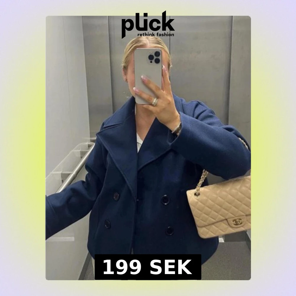 Snygg mörkblå skepparkavaj med bred krage och dubbelknäppning framtill. Jackan har långa ärmar och klassisk, rak passform. Perfekt för dig som gillar stilrena och tidlösa plagg med lite marint vibe.