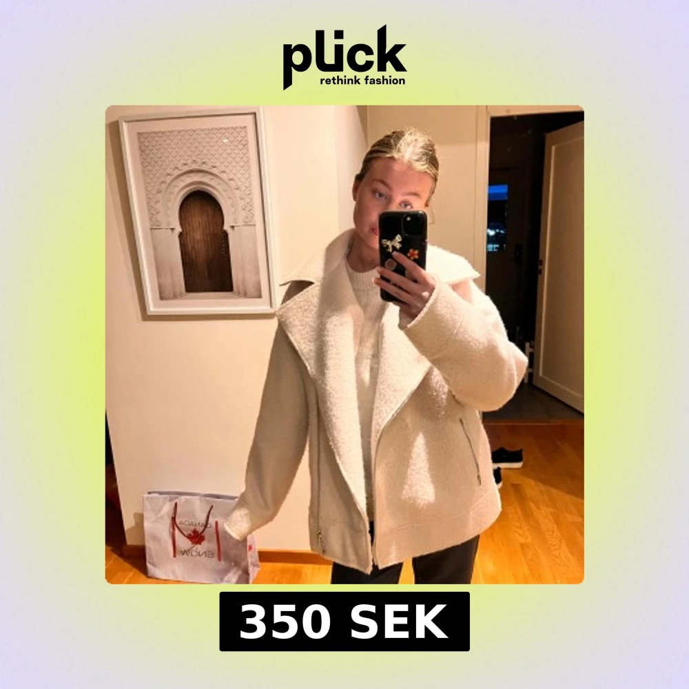 Säljer en stilren vit ulljacka med dragkedja och bred krage. Jackan har en oversized passform och är perfekt för kyligare dagar. Den är både snygg och bekväm, och passar bra till olika outfits.