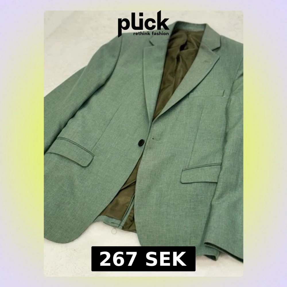 Snygg grön kavaj med klassisk krage och en knapp framtill. Fodrad insida i olivgrönt tyg och två fickor med lock. Perfekt för dig som vill ha en stilren look med lite färg. Passar till både jeans och kostymbyxor.