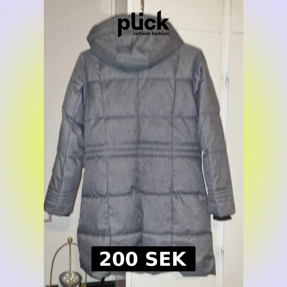 Säljer en grå pufferjacka från Tribute med huva och dragkedja. Jackan har quiltad design, långa ärmar och praktiska fickor med dragkedja. Perfekt för kalla dagar och har en snygg, modern look.