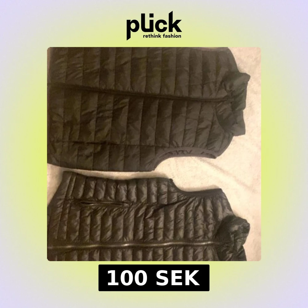 Säljer en svart dunväst med quiltad design och hel dragkedja framtill. Västen har ståkrage och två fickor med dragkedja. Perfekt för lager-på-lager och enkel att matcha med olika outfits.