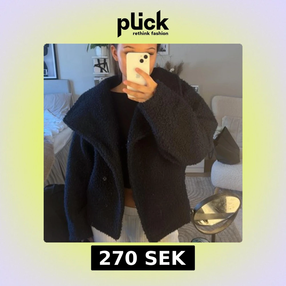 Mysig svart teddyjacka med stor krage och knappar framtill. Säljs då jag har för många jackor💞