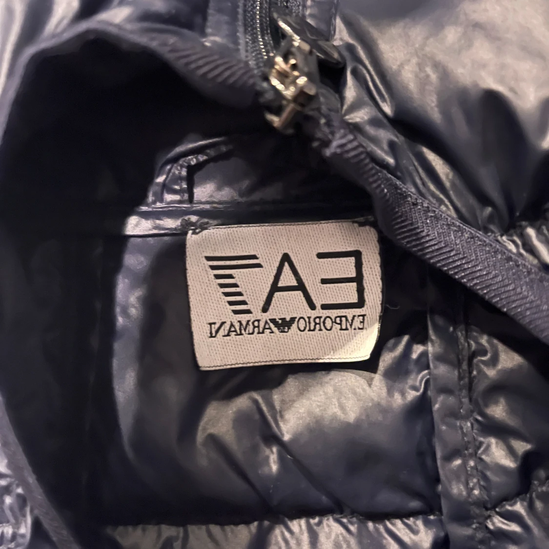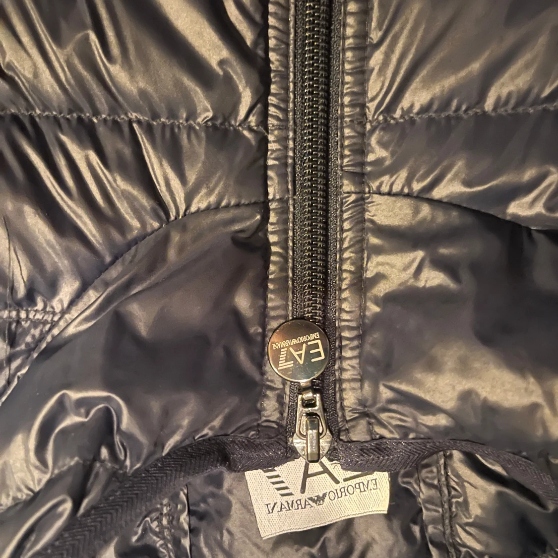 Snygg svart pufferjacka från EA7 Emporio Armani med huva och dragkedja. Perfekt för kyligare dagar med sin quiltade design som håller värmen. Jackan har en stilren look med EA7-logga på bröstet.