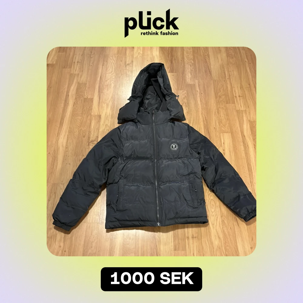 Säljer en svart pufferjacka från Trapstar i mycket bra skick. Jackan har en stor huva och dragkedja framtill. Den är perfekt för kalla dagar och har en cool logga på ryggen. Passar både till vardags och festliga tillfällen. Storlek S.