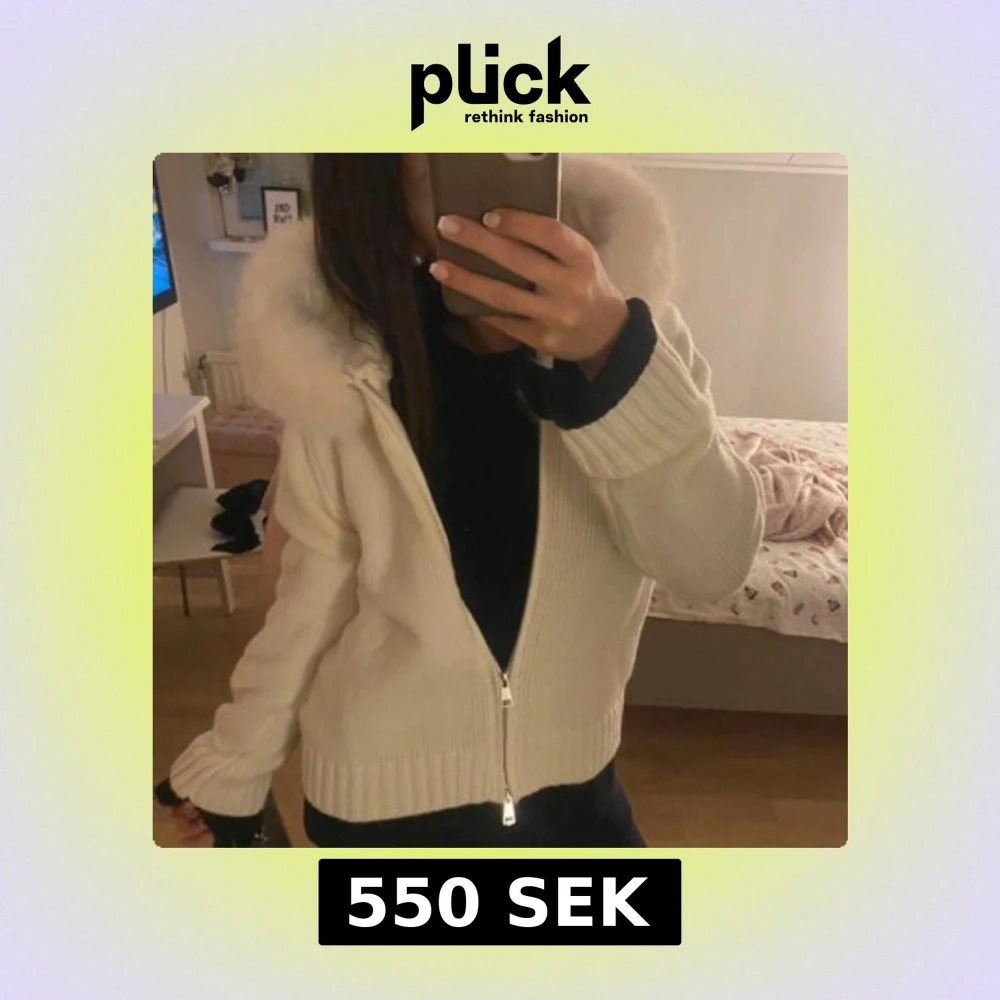 Säljer en mysig vit stickad cardigan med dragkedja och fluffig pälskrage. Perfekt vårjacka - mycket bra skick🥰🥰 skriv dm för mer info