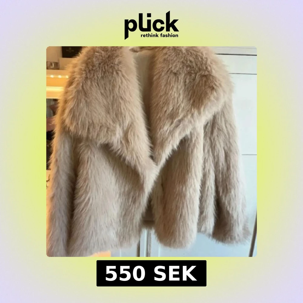 Säljer en supermjuk och fluffig beige pälsjacka. Perfekt för att hålla sig varm och stilren under kyliga dagar. Jackan har en klassisk design med långa ärmar och en generös krage.