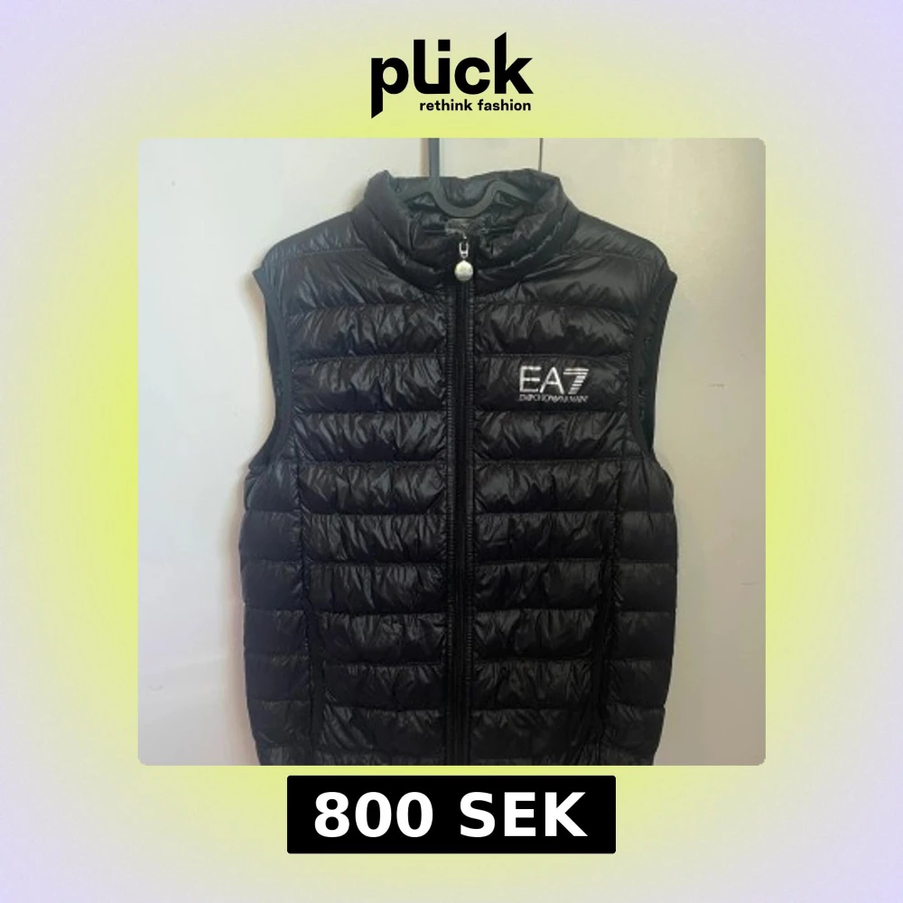 Snygg svart dunväst från Emporio Armani med dragkedja framtill. Västen har en quiltad design och en hög krage för extra värme. Perfekt för kyligare dagar när du vill hålla stilen.
