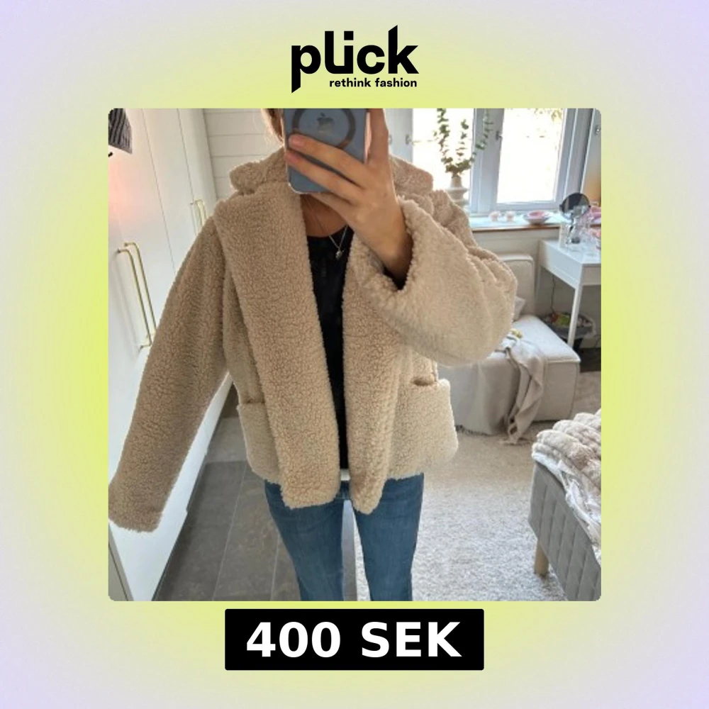 Mysig beige teddyjacka. Jackan har en avslappnad passform och är lätt att matcha med olika outfits.