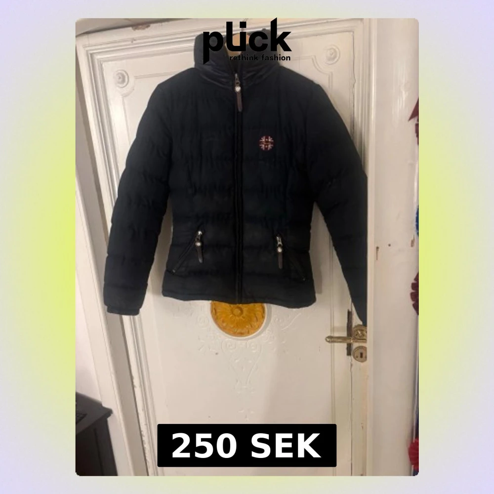 Svart pufferjacka från spooks med hög krage och två snedställda fickor med dragkedja. Jackan har quiltad design och ett broderat märke på bröstet. Perfekt för kalla dagar och har en snygg, modern look.