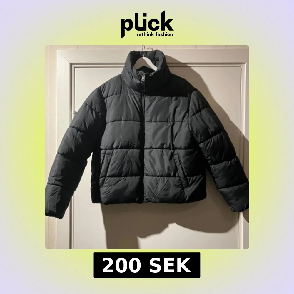 Snygg svart pufferjacka från 157 i storlek S. Jackan har en hög krage och dragkedja framtill. . Quiltade designen och lös passform. Mkt lätt