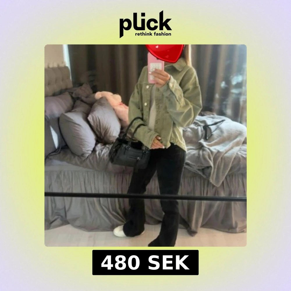 Säljer en snygg grön jeansjacka med klassisk krage och knäppning framtill. Jackan har en avslappnad passform och långa ärmar, perfekt att slänga över en hoodie eller t-shirt. Enkel och stilren design som passar till det mesta.