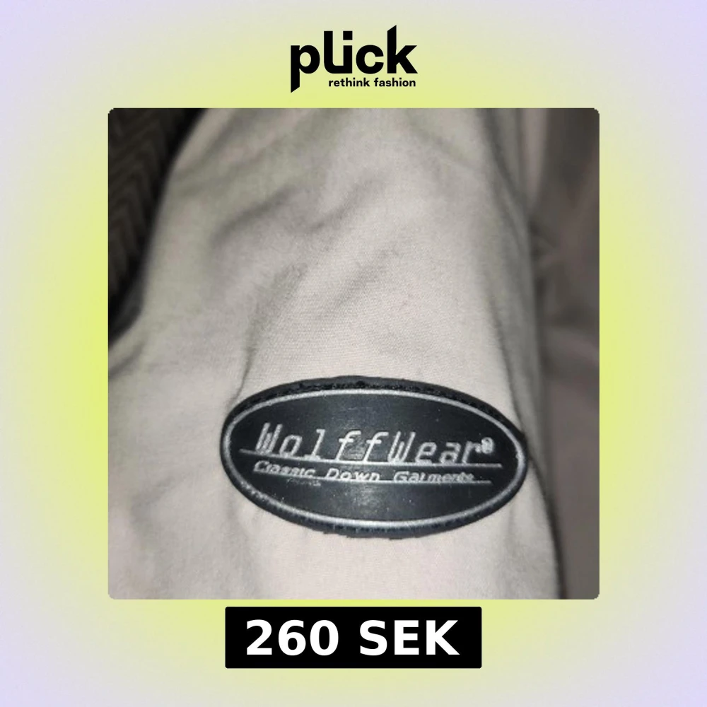 Snygg beige dunjacka från Wolffwear med quiltat svart foder och hög krage. Jackan har dragkedja, tryckknappar, två fickor framtill och ribbade muddar vid ärmslut och nederkant. Perfekt för kalla dagar och riktigt skön att bära.