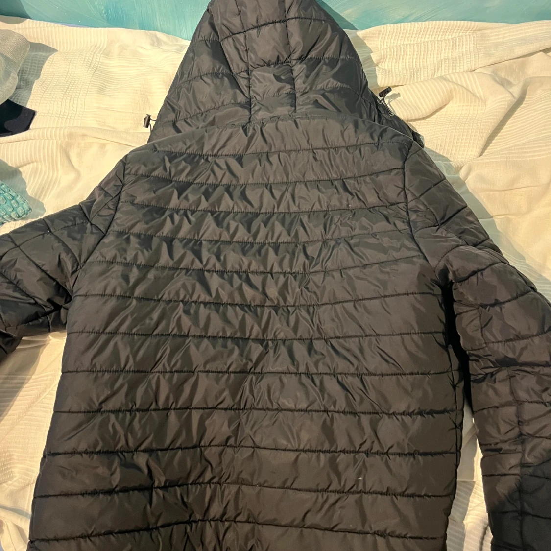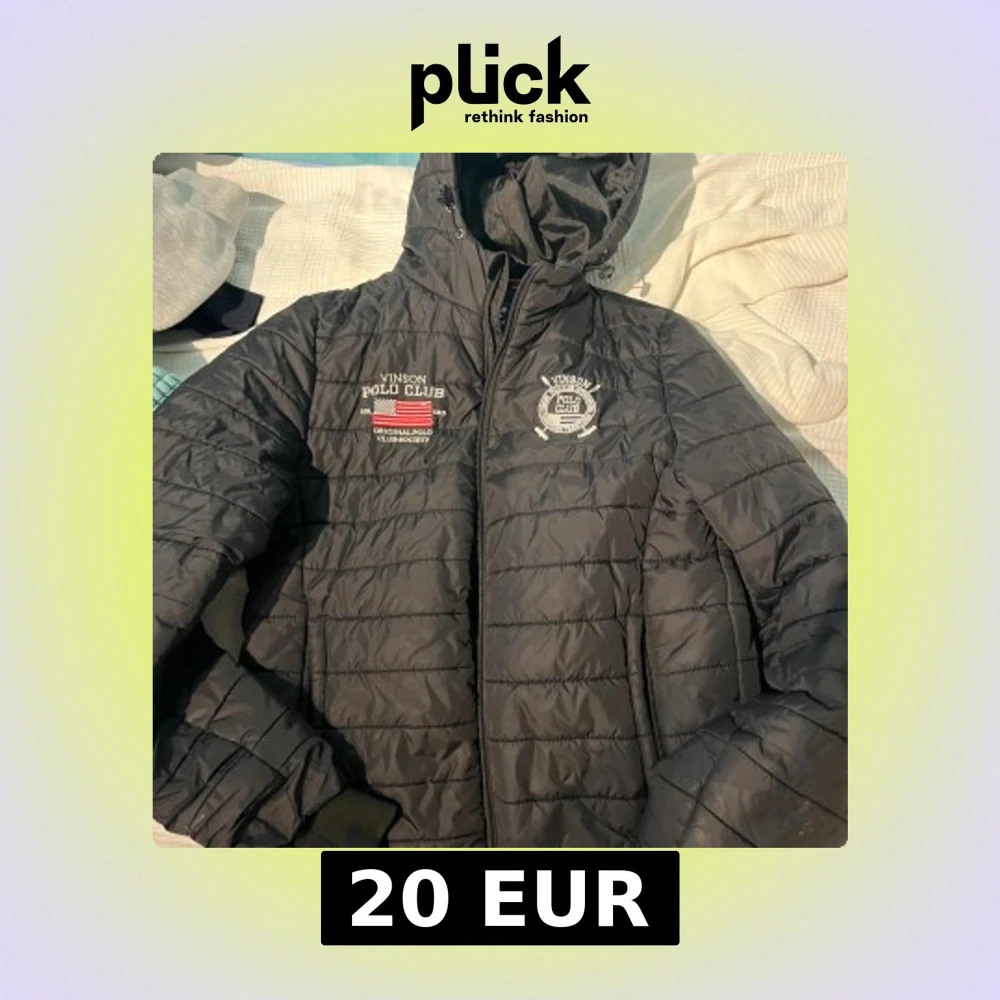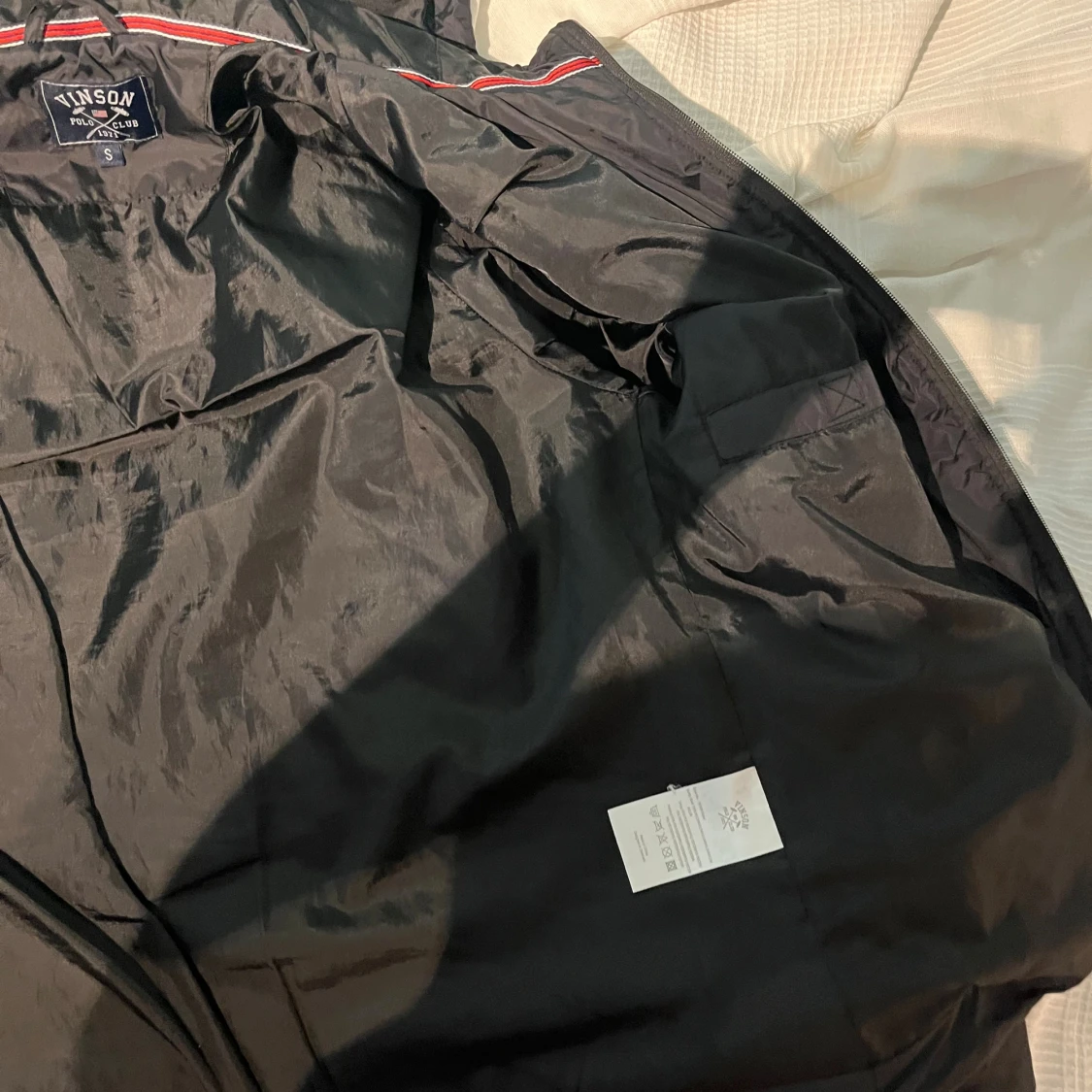 Svart pufferjacka från Vinson Polo Club med broderade loggor på bröstet och huva. Jackan har quiltad design, dragkedja framtill och ribbade muddar. Materialet är nylon på utsidan och polyesterfoder. Perfekt för kyliga dagar.