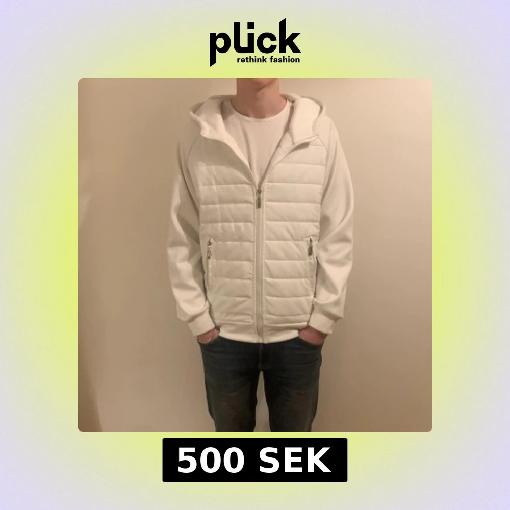 Säljer en stilren vit quiltad jacka med huva. Jackan har dragkedja framtill och två praktiska fickor med dragkedjor. Perfekt för kyligare dagar.