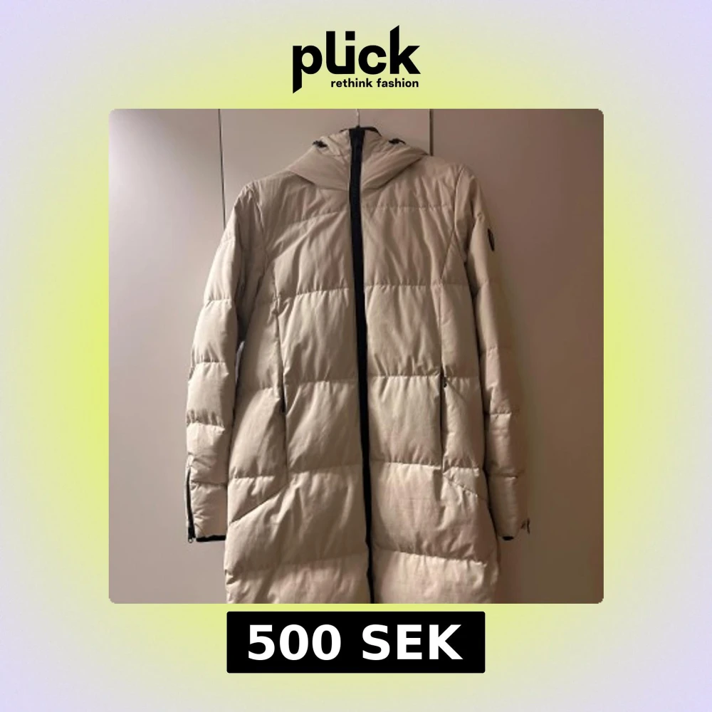 Säljer en beige lång dunjacka från Tenson med huva och svarta dragkedjor. Jackan har quiltad design och är perfekt för kalla dagar. Den har praktiska fickor med dragkedja och en snygg logga i nacken. Passformen är normal och ärmarna är långärmade. Väldigt få använd.