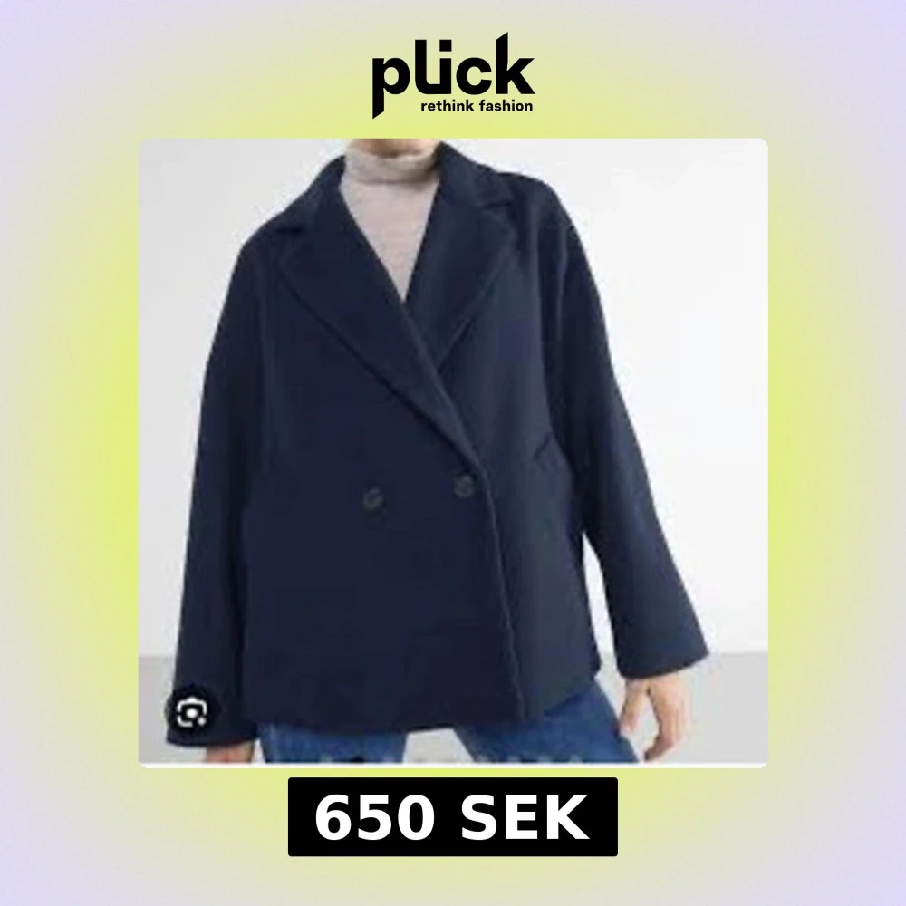 Snygg mörkblå kappa med dubbelknäppning och en klassisk krage. Perfekt för kyligare dagar och ger en stilren look. Passar bra till jeans eller mer uppklädda outfits.