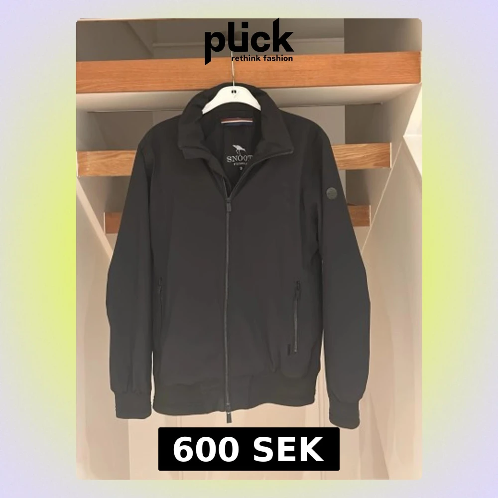 Stilren svart vindjacka från Snoot med hög krage och hel dragkedja framtill. Jackan har två sidofickor med dragkedja, ribbade muddar vid ärmslut och nederkant samt en diskret logotyp på ärmen. Perfekt för blåsiga dagar.