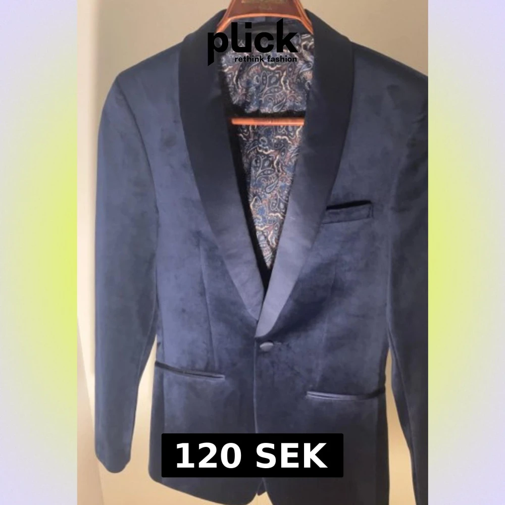 Snygg mörkblå kavaj i sammet med breda slag och paisleymönstrat innerfoder. Klassisk passform med två fickor fram och en bröstficka. Perfekt för dig som vill sticka ut med en elegant och lyxig look.