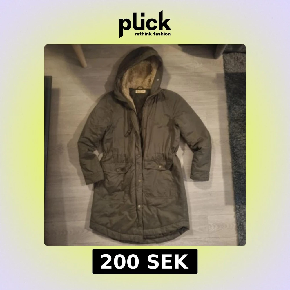 Säljer en olivgrön parkas från L.O.G.G. med mysigt teddyfoder i huvan och insidan. Jackan har dragsko i midjan, stora fickor med lock och knappar framtill. Perfekt för kalla dagar när du vill hålla dig varm och bekväm.
