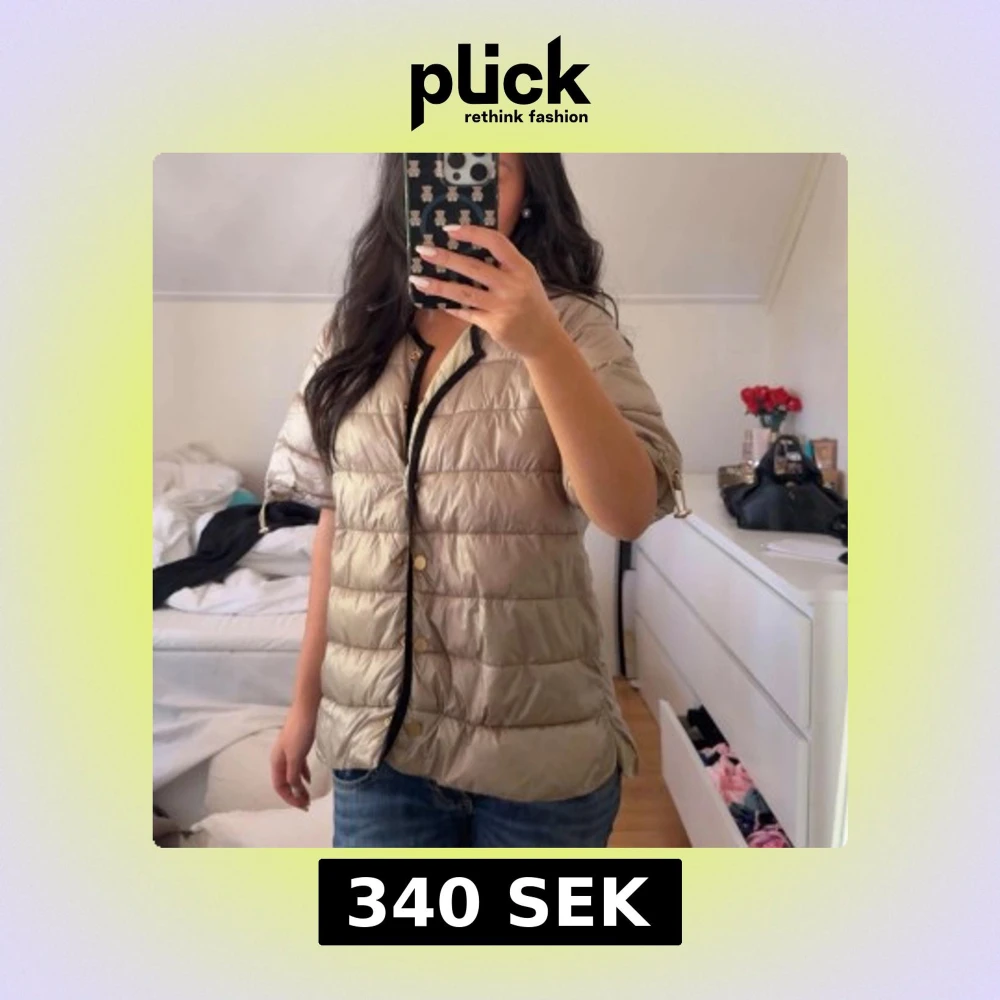Säljer en jätte fin trekvartsärmad dunjacka med guldknappar!! 💗💗 Översta knappen går inte att knäppa, men annars inga defekter 💕
