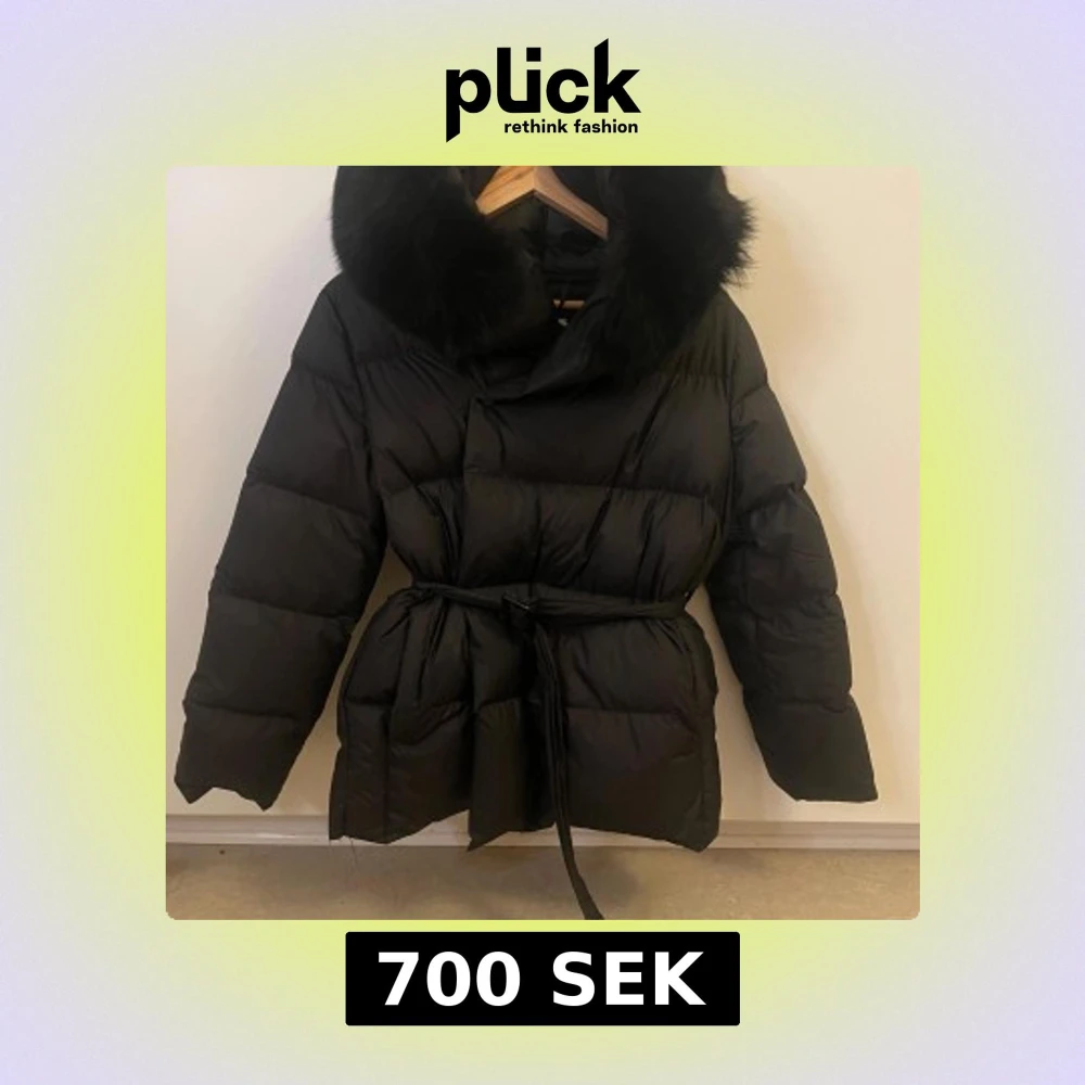 Säljer en svart pufferjacka med stor fluffig äkta päls runt kragen och bälte i midjan. Jackan är vadderad och har en oversized look, perfekt för kalla dagar. Långärmad och riktigt mysig att bära under vintern. Jackan är använd ett fåtal gånger och är i ett bra skick.