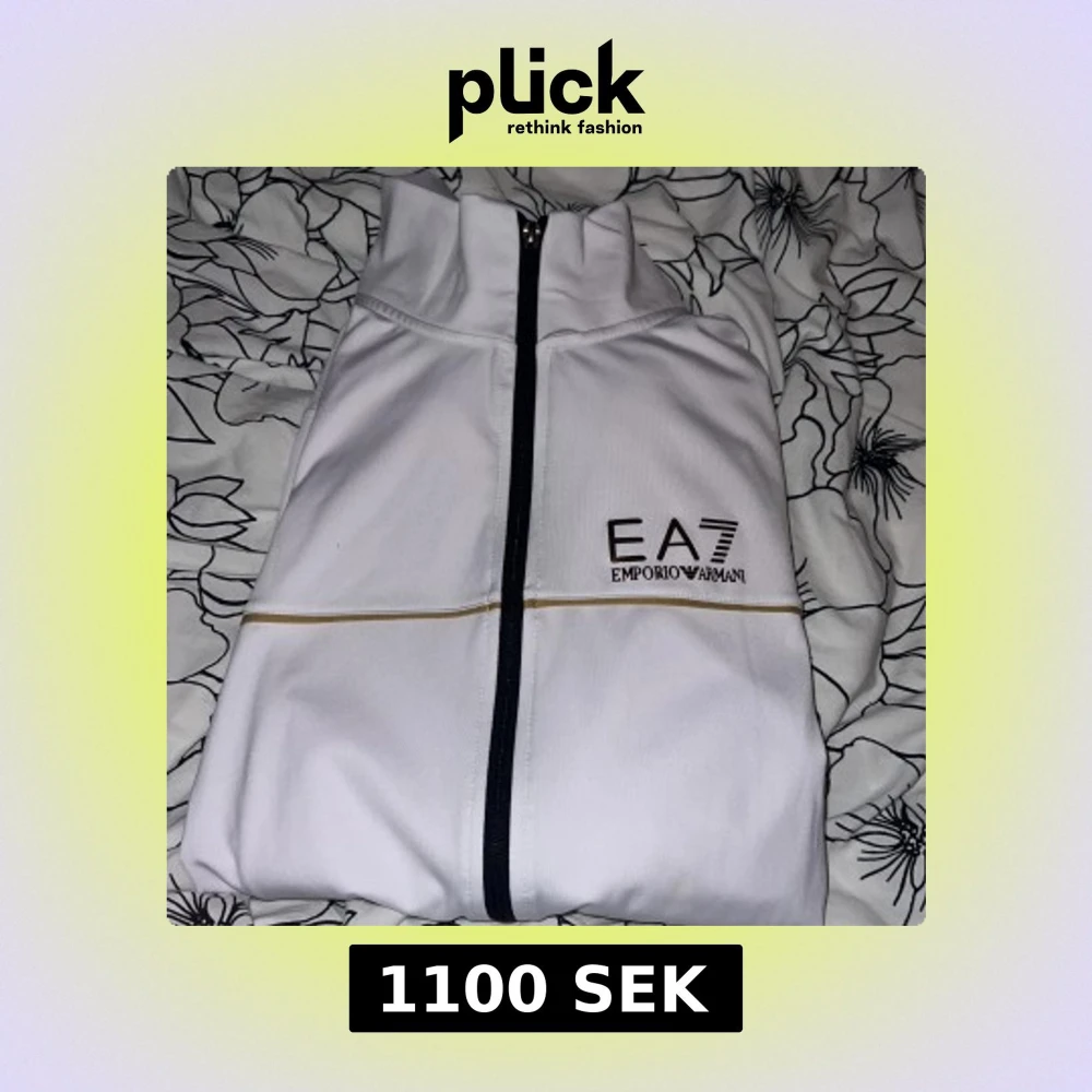 Snygg vit jacka från EA7 Emporio Armani med svarta dragkedjor och tunna guldiga linjer. Jackan har hög krage, lång ärm och två fickor med dragkedja. Perfekt för dig som vill ha en stilren och sportig look.