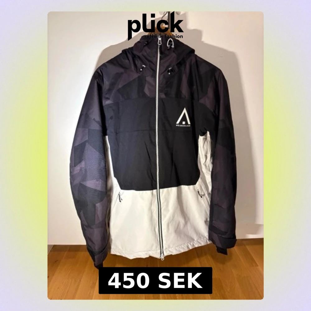 Snygg vindjacka från WearColour i svart och vit med geometriskt mönster på ärmar och överdel. Jackan har huva med snörning, hel dragkedja och två sidofickor med dragkedja. Perfekt för dig som gillar streetstyle och funktion.