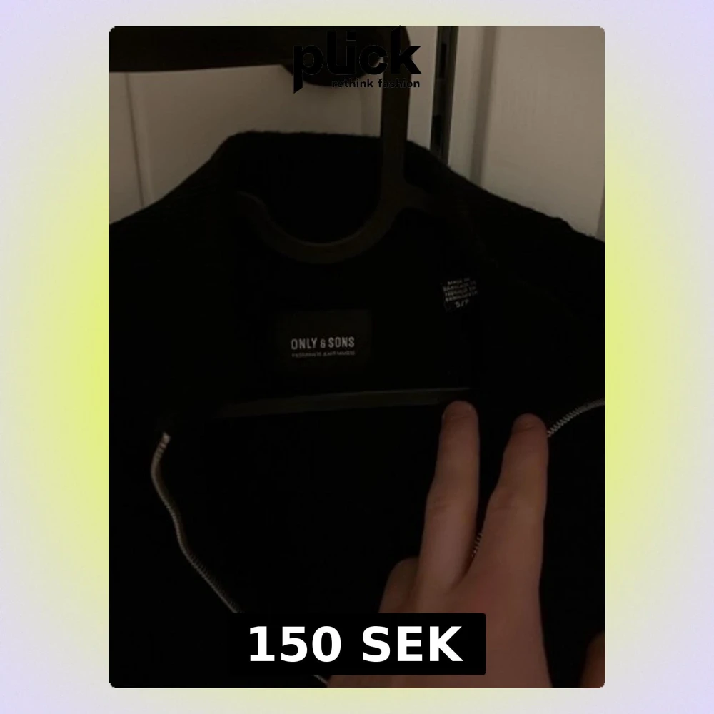 Säljer en svart stickad overshirt från Only & Sons. Jackan har en clean look med hel dragkedja framtill och lång ärm. Perfekt för dig som gillar minimalistisk stil och vill ha något enkelt men snyggt att slänga på sig.