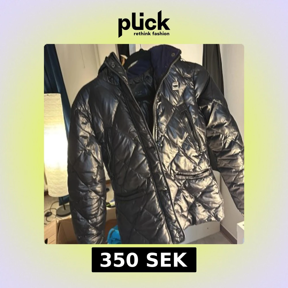 Snygg svart quiltad jacka från G-Star med dragkedja och huva. Jackan har en glansig finish och är perfekt för kyligare dagar. Den har praktiska fickor med dragkedjor och en stilren design.