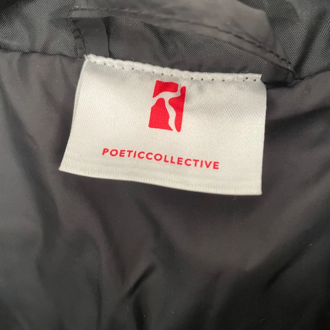 Säljer en stilren svart vindjacka från Poetic Collective. Jackan har en praktisk huva och dragkedja framtill. Perfekt för blåsiga dagar och ger en cool look. Passar bra till både vardag och äventyr. Vanligt pris är 1500.