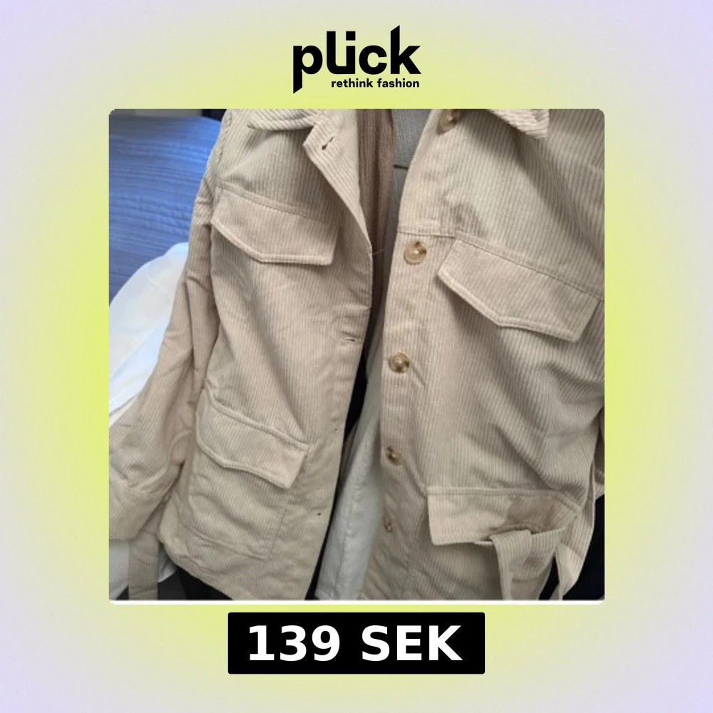 Snygg beige manchesterjacka med knappar framtill och flera praktiska fickor. Perfekt för en avslappnad stil. Jackan har en klassisk krage och är långärmad. Passa på nu när det är gratis frakt(:🫶