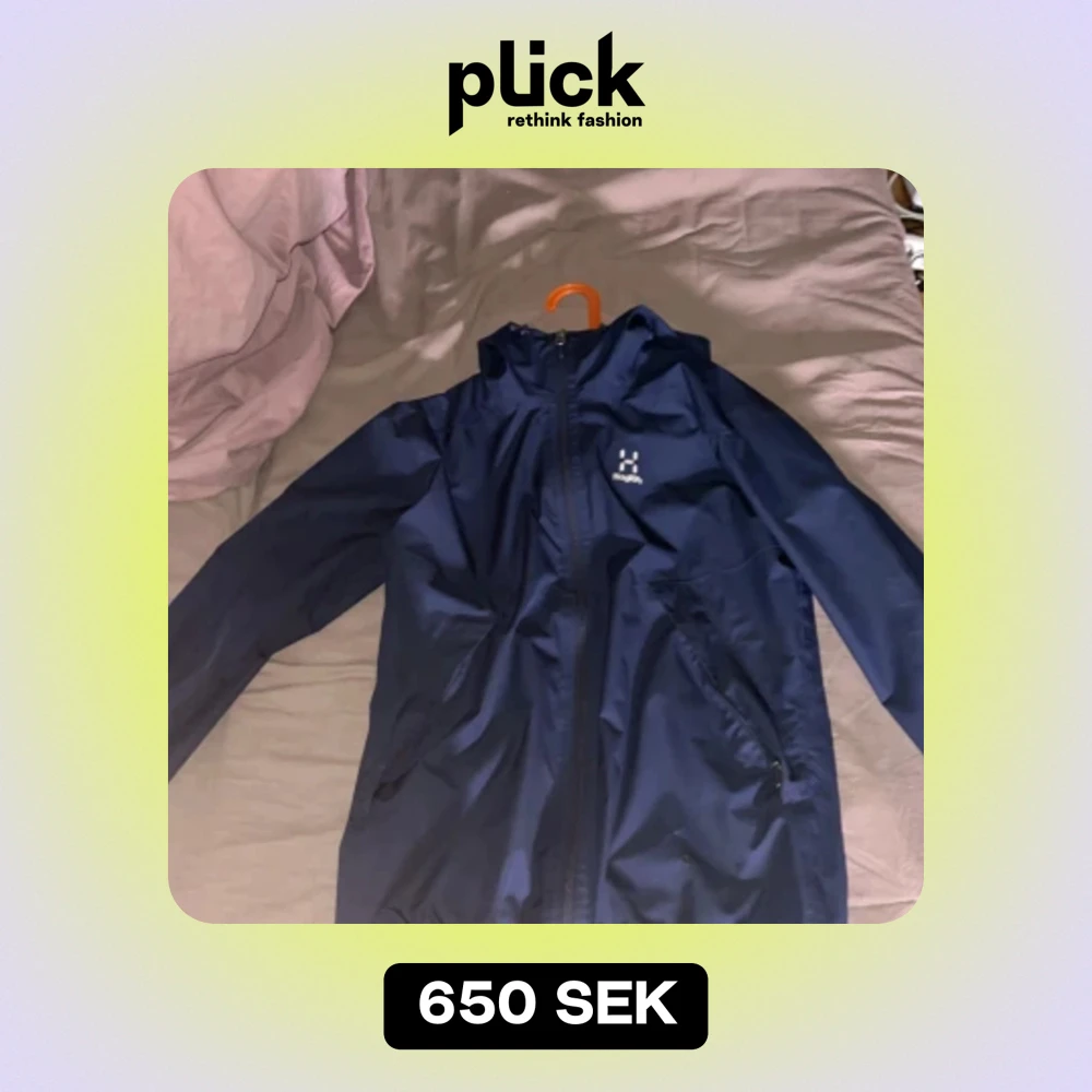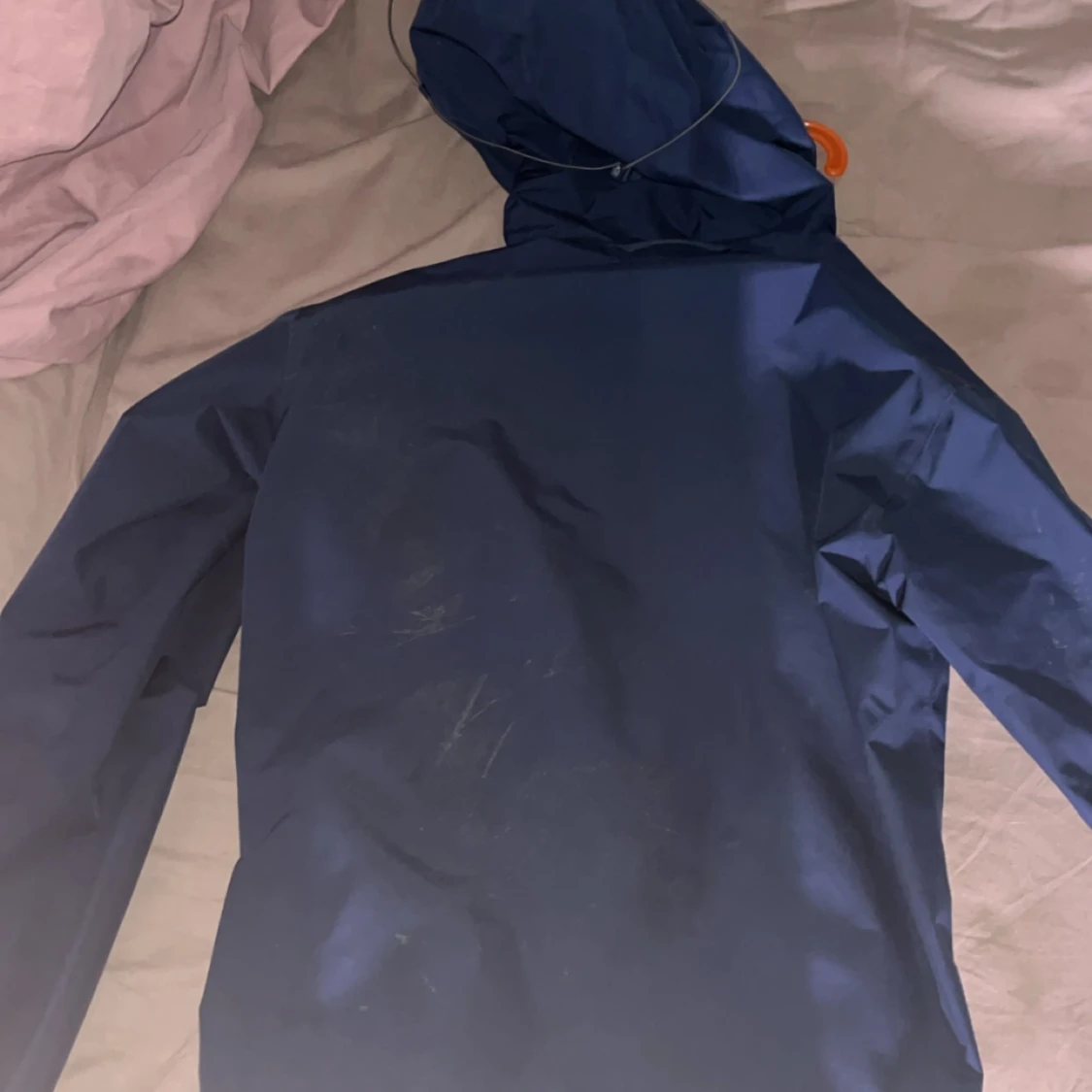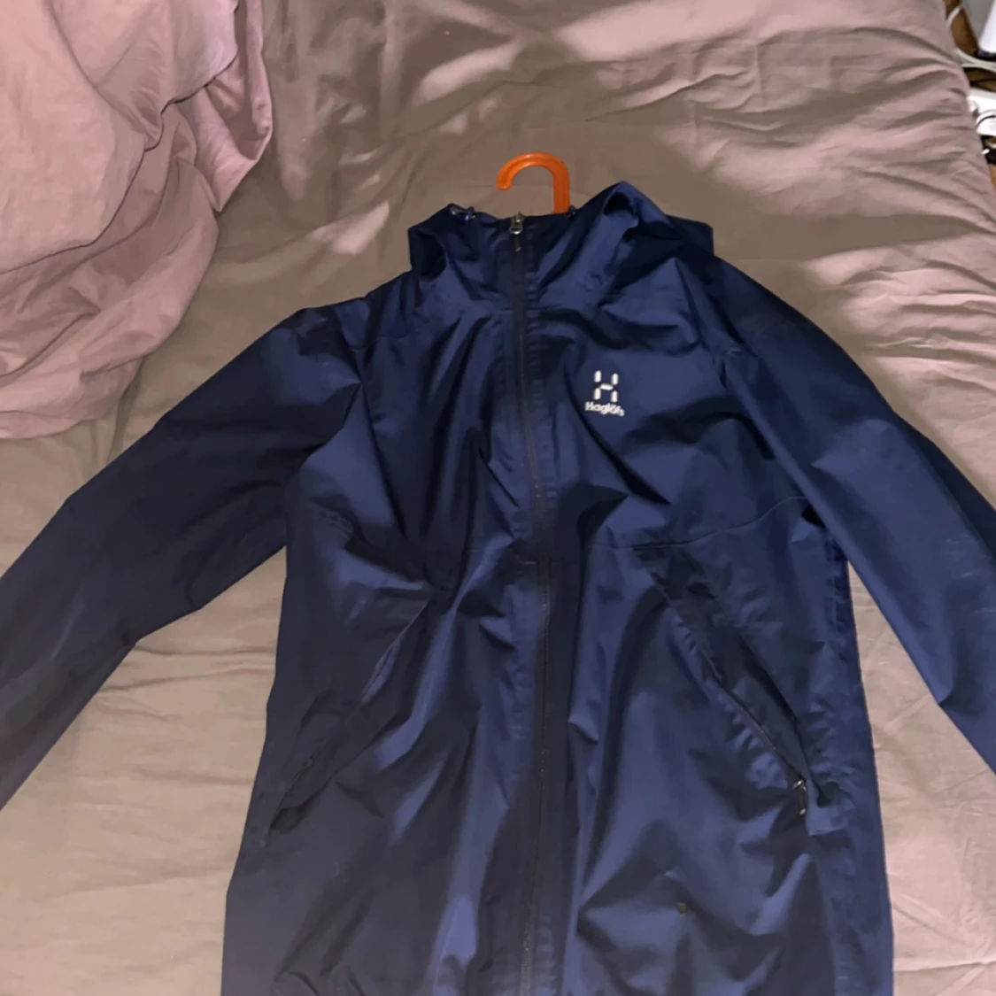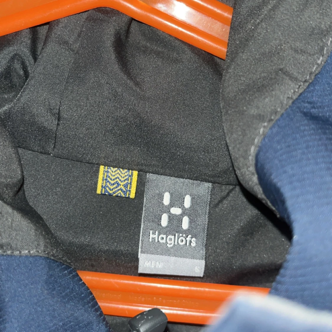 Haglöfs marine blå jacka lite smutsig men går att tvättas bort