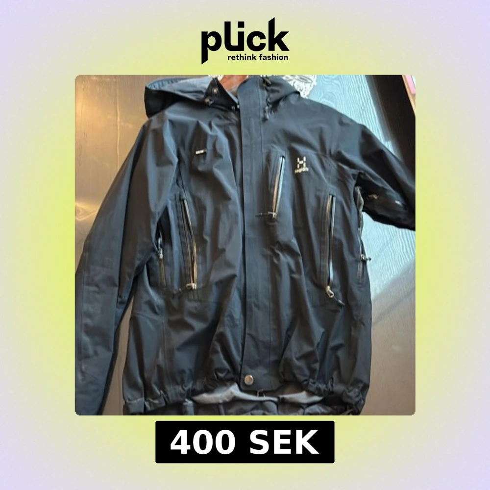 Snygg svart vindjacka från Haglöfs med flera dragkedjeförsedda fickor och justerbar huva. Jackan har en sportig look och är perfekt för utomhusaktiviteter. Materialet är slitstarkt och vattenavvisande, med detaljer som dragsko i midjan och logga på bröstet.