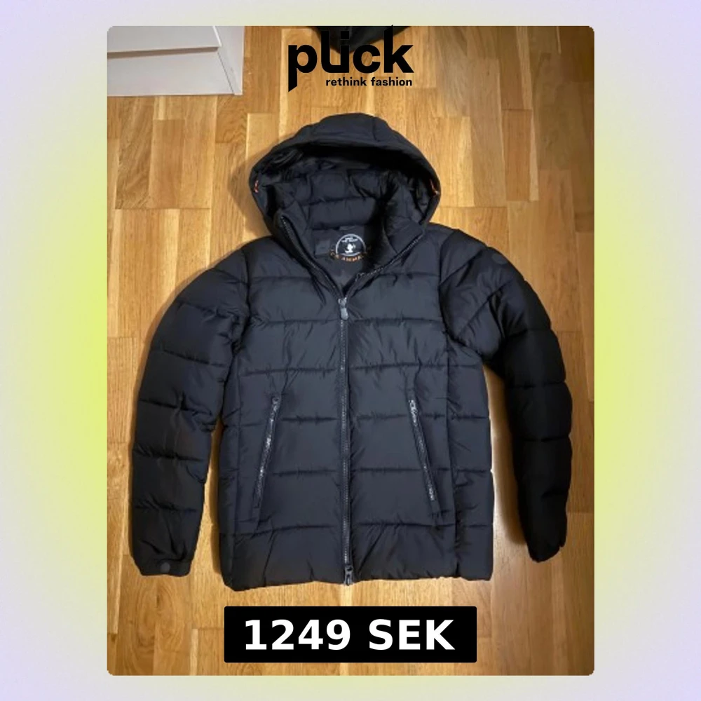 Passar som S. Säljer en svart pufferjacka från Save The Duck med huva och dragkedja. Jackan är tillverkad av återvunnen polyester och har Plumtech-fyllning som är helt animal free. Snygg, stilren och perfekt för kalla dagar. Passar dig som gillar clean look och vill ha något varmt.
