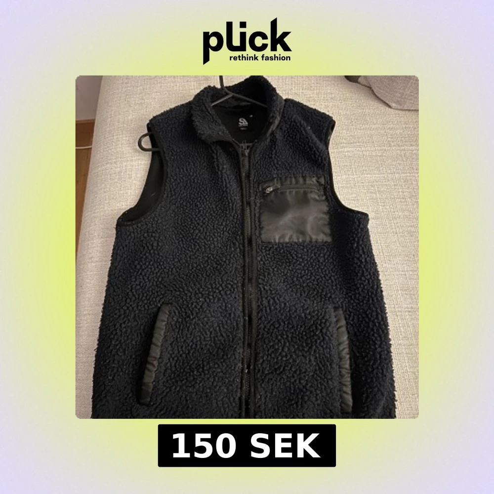 Säljer en svart fleeceväst med dragkedja och praktiska fickor. Västen har en bröstficka med dragkedja och är perfekt för kyligare dagar. Köparen står för frakt!