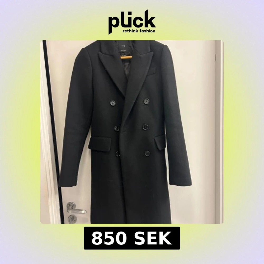 Elegant svart rock från MNG i ullblandning. Rocken har en klassisk design med dubbelknäppning och långa ärmar. Perfekt för kyligare dagar.