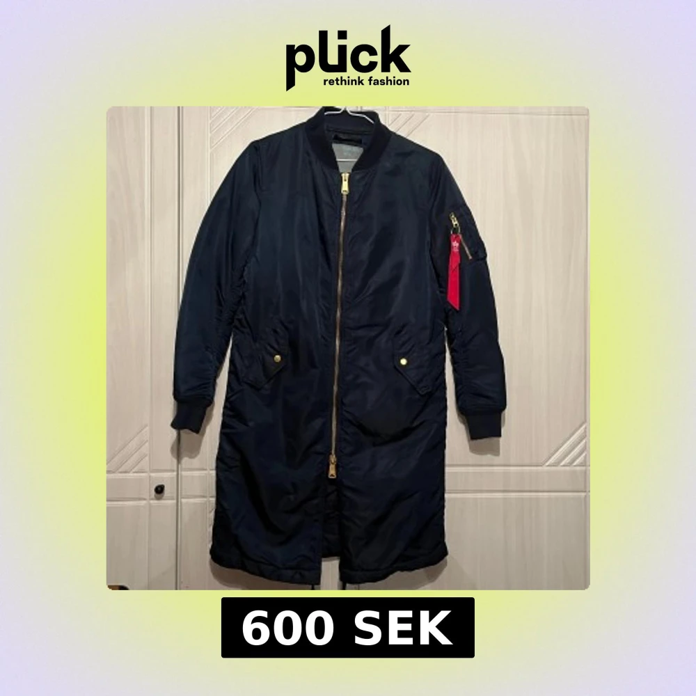 Mörkblå lång bomberjacka från Alpha Industries S