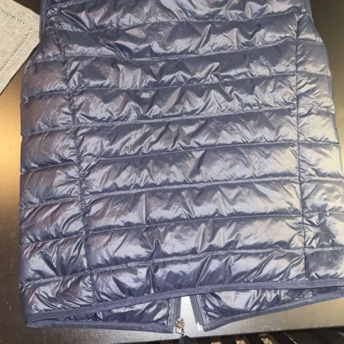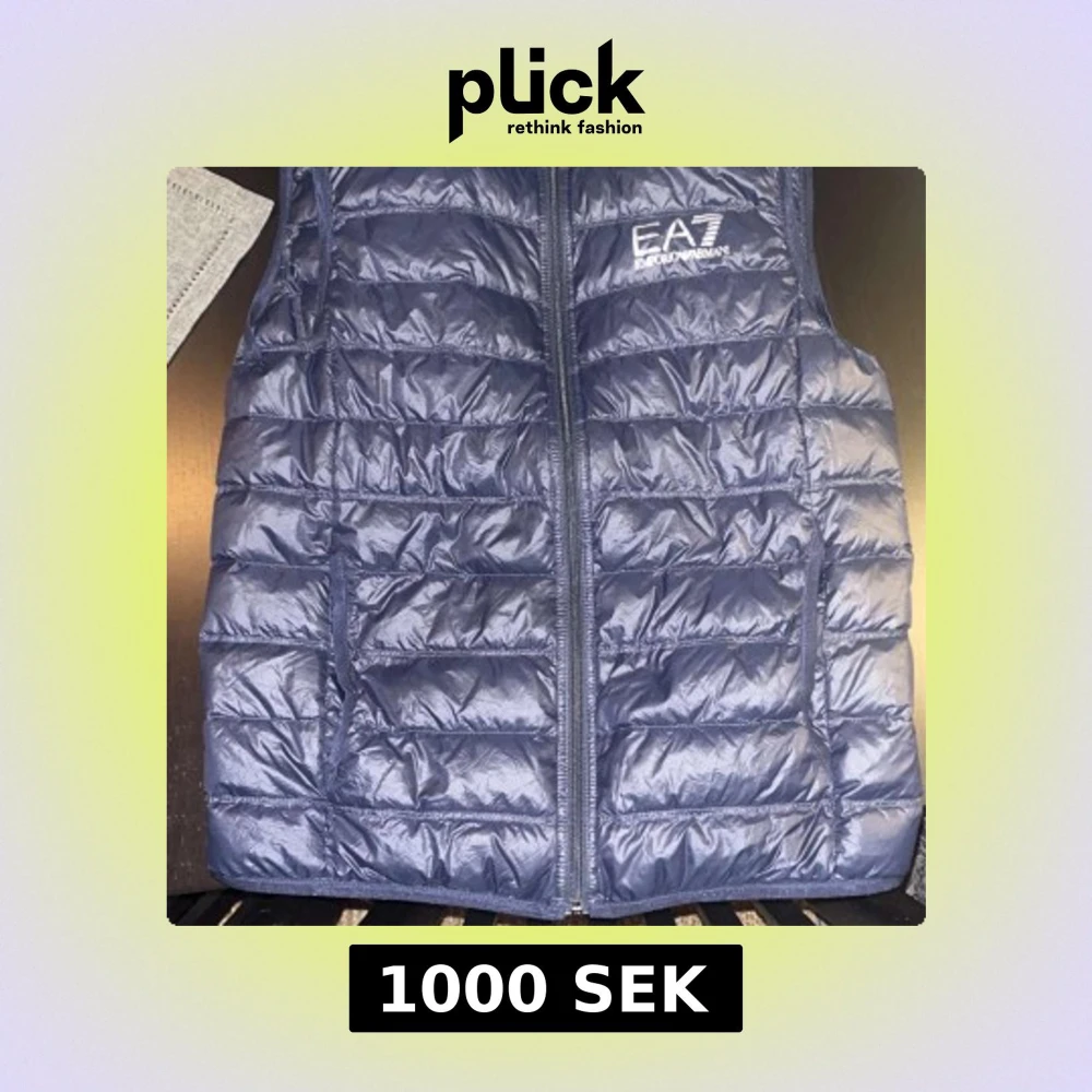 Snygg blå dunväst från Emporio Armani med EA7-logga på bröstet. Västen har en quiltad design och dragkedja framtill. Perfekt för lager-på-lager under kyligare dagar.