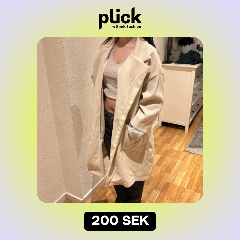 Säljer en stilren beige kappa i normal passform. Den har långa ärmar och knappar framtill. Perfekt för höst och vår, och ger en elegant touch till vilken outfit som helst.